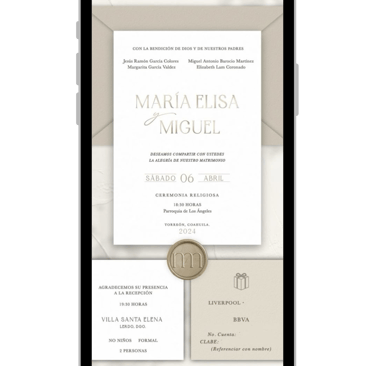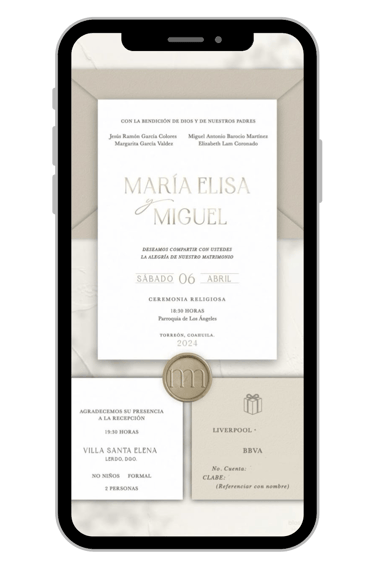 Una experiencia digital que conserva la esencia de una invitación tradicional: incluye confirmación de asistencia, direcciones y mesa de regalos. Y lo mejor, ¡puede personalizarse con los nombres de tus invitados!